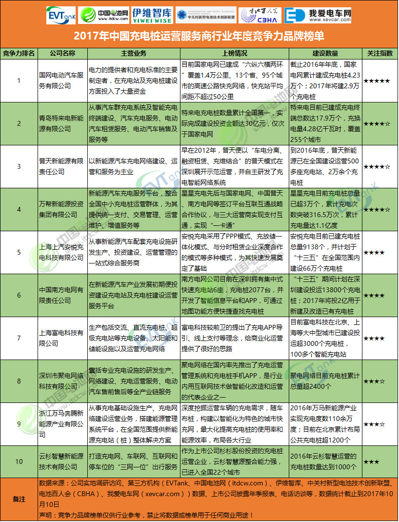 24日下午,在第5屆鋰電“達沃斯”論壇上,由EVTank、中國電池網(wǎng)(itdcw.com)、伊維智庫、中關(guān)村新型電池技術(shù)創(chuàng)新聯(lián)盟、電池百人會(CBHA)、我愛電車網(wǎng)(xevcar.com)聯(lián)合調(diào)研并推出的2017年度中國鋰電池產(chǎn)業(yè)鏈年度競爭力品牌榜單發(fā)布,來自正極材料、負極材料、電解液、隔膜、動力電池等領(lǐng)域的50家公司上榜;另外,本屆論壇還新增了2017年中國新能源乘用車行業(yè)年度競爭力品牌榜單以及2017年中國充電樁運營服務(wù)商行業(yè)年度競爭力品牌榜單,來自新能源乘用車、充電樁運營領(lǐng)域等20家企業(yè)上榜。