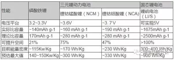 表格 三元鋰電池與固態鋰電池技術性能對比